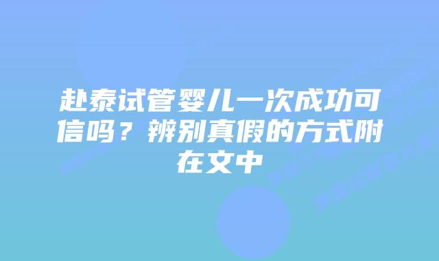 要判断"赴泰试管婴儿一次成功"是否可信,我们可以从以下几个方面进行评估。