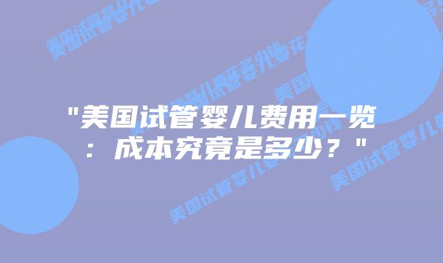 试管婴儿是一种不孕不育患者常用的生育治疗方法,而在美国,进行试管婴儿并非一项廉价的程序。试管婴儿的费用因个人情况而异,包括医生费用、药物费用、手术费用等各种因素。