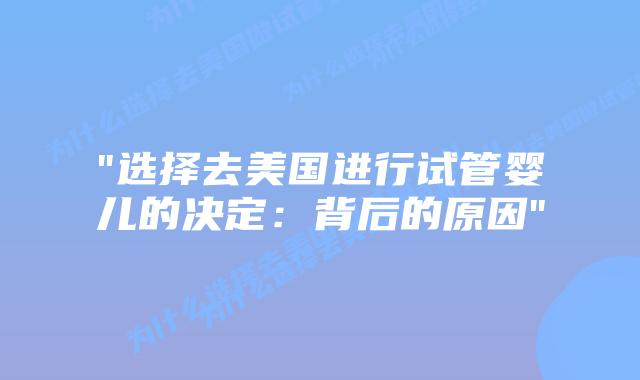 选择去美国进行试管婴儿的决定是一个经过深思熟虑的过程,背后可能涉及多种原因。