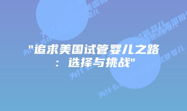 近年来,随着科技的发展,试管婴儿技术在世界范围内越来越受欢迎。对于许多渴望成为父母的夫妇来说,美国成为他们追求试管婴儿的首选之地。然而,选择美国试管婴儿之路并不是一帆风顺,其中存在着诸多挑战。