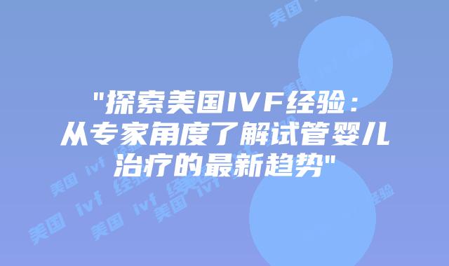 “探索美国IVF经验:从专家角度了解试管婴儿治疗的最新趋势”