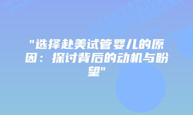 选择赴美试管婴儿的原因各有不同,其中背后隐藏着各种动机和盼望。在这个现代社会,不少夫妇因为种种原因无法顺利怀孕,于是转而选择试管婴儿这一科技带来的希望。