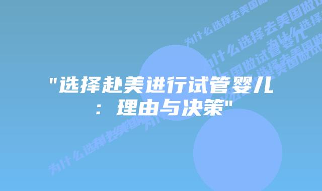 试管婴儿是一种辅助生殖技术,对那些无法自然怀孕的夫妇来说是一种希望。在选择赴美进行试管婴儿过程中,人们通常会考虑以下几个方面的理由和决策: