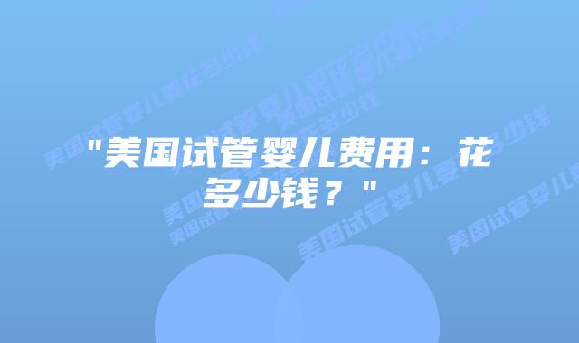 试管婴儿是一种辅助生殖技术,为许多不孕夫妇带来了希望。在美国,试管婴儿的费用是许多人关心的一个问题。