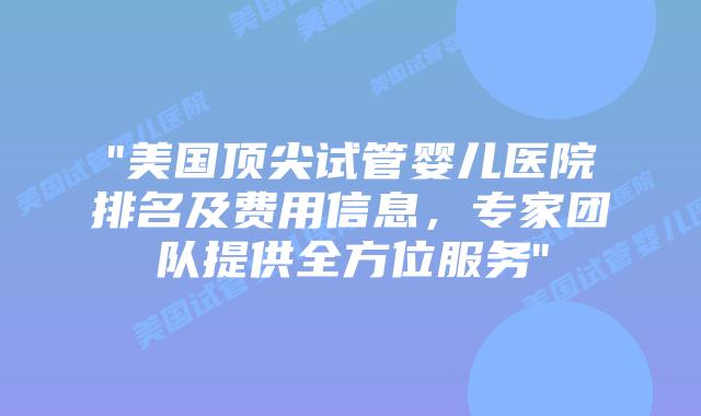 美国试管婴儿诊所选择攻略
